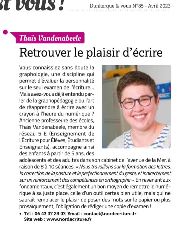Dorénavant, je me consacre uniquement à la graphopédagogie au sein de mon cabinet à Dunkerque.