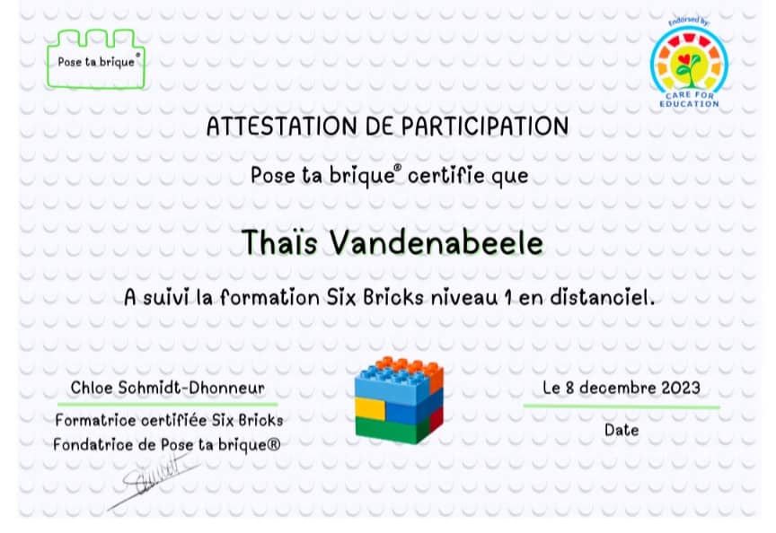 Animatrice Six Bricks niveau 1 et 2